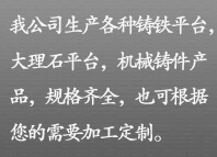 全意鑄鐵平臺平板廠家專注生產T型槽鑄鐵平臺,大理石氣浮實驗石平臺,han接鑄鐵平臺,裝配鑄鐵平臺,檢測測量大理石平臺,試驗鑄鐵平臺,測量大理石平板,T型槽平臺,電機試驗平臺,三坐標測量平臺等鑄鐵平板來圖加工定做業務,以合理的價格,專注的技術服務于國內外客戶,互利合作,共同發展!公司位于河北交河開發區,京滬鐵路、104國道、106國道、京福高速公路橫穿而過,與我國的兩大直轄市北京、天津近在咫尺,地理位置優越,交通非常便利。我公司本著以誠納客”“嚴把質量關”“價格優惠”“用戶至上的原則,幾十年兢兢業業,受到用戶的一致好評!
